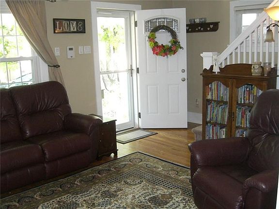The lovely front porch is so inviting The entire home is neat and clean and Nicely updated and decorated in current color palate. Lots of cabinetry and counter space in the open kitchen with newer appliances Plenty of Windows to allow natural light to flood the rooms. Convenient first floor powder room. Gleeming hardwoods on first floor. Nice sized bedrooms each offer multiple bright Windows and master bedroom boasts TWO closets!! Private rear yard is totally fenced so children and pets can romp and play care free!! There is a small covered private rear patio area as well. A one car garage and covered carport offer great off street parking. Perfect location! Close to court house,hospital,college,shopping and other amenities