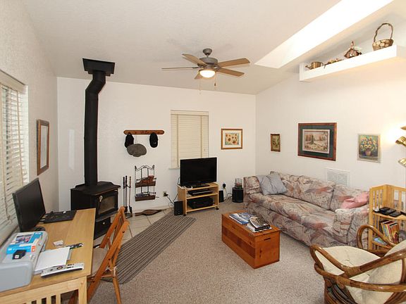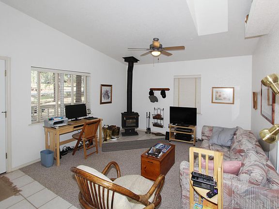 Light and Bright! Vaulted ceiling and skylights lighten up this 2 bedroom, 2 bath, 992 sq. ft. home built in 2000 on a nicely treed level lot in Mountainaire. Wood stove, large walk-in closets, 2 covered decks and plenty of room out front for a garage make this affordable home great for a rental property, second home or year round residence. Original owners have taken great care of the get-away cabin. Don't forget to watch the virtual tour!