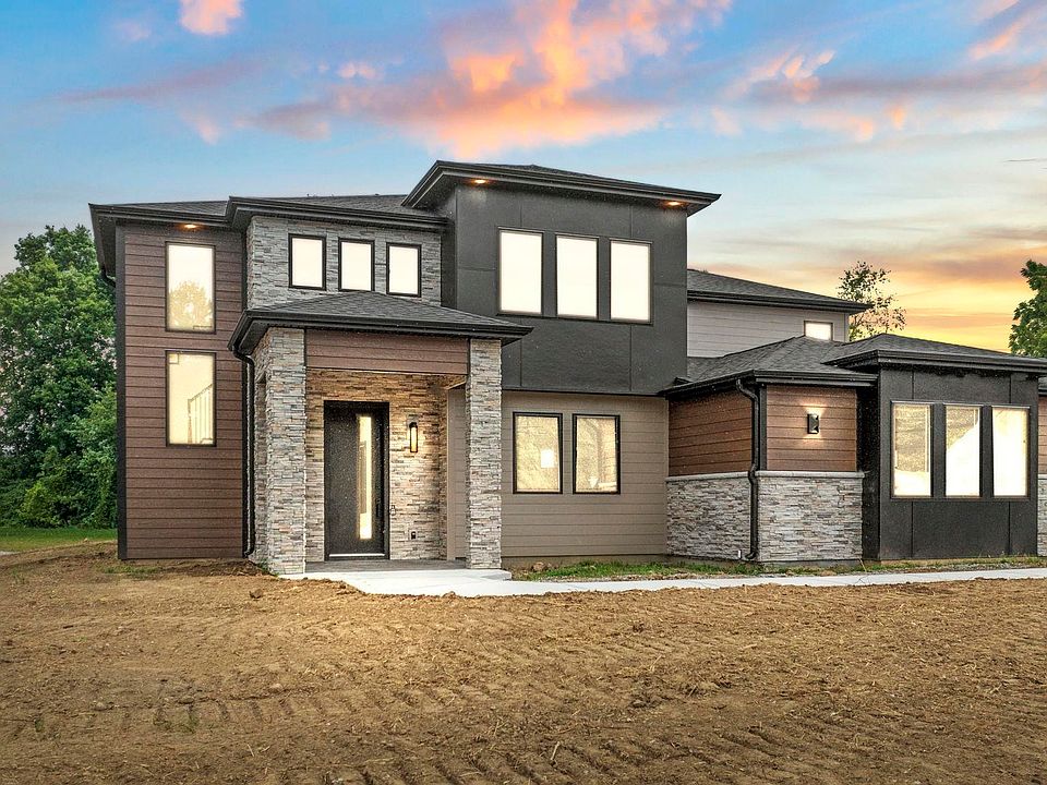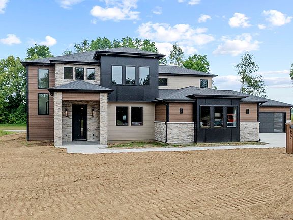 Introducing a stunning new creation by Preston Allen Homes, a premier home builder in Fort Wayne, IN. This exceptional 3,858 sq. ft. modern two-story residence in the coveted Shadow Creek community is a testament to sophisticated design and unparalleled craftsmanship. Step through the grand entryway, where 11 expansive windows illuminate the space with an abundance of natural light, highlighting the striking 2-story open staircase. The home boasts two contemporary fireplaces: one seamlessly integrated into the living area with bespoke built-ins, and the other serving as a serene focal point above the soaking tub in the luxurious primary bathroom. The primary suite is a true retreat, featuring an oversized walk-in closet and a walk-through shower, meticulously designed to offer a sense of peace and tranquility. This exquisite home includes 4 spacious bedrooms and 3.5 bathrooms, offering a perfect blend of style and functionality for modern living. Upstairs, a generous bonus room with a wet bar provides the ideal space for extended entertainment and leisure. Every element of this home reflects Preston Allen Homes' commitment to excellence and luxury living. Discover a sanctuary where every detail is thoughtfully crafted to elevate your living experience. Experience the pinnacle of luxury with Preston Allen Homes in Shadow Creek, where your dream home awaits. (Builder Warranty: 1 year bumper-bumper warranty, 1 year walk-through, 10 year structural warranty, all manufacturer warranties convey).
