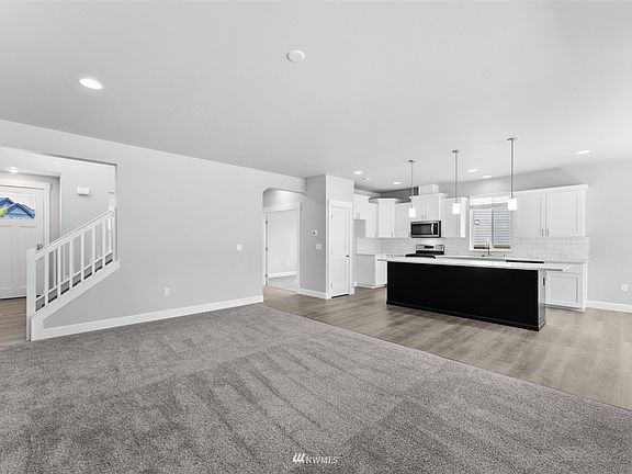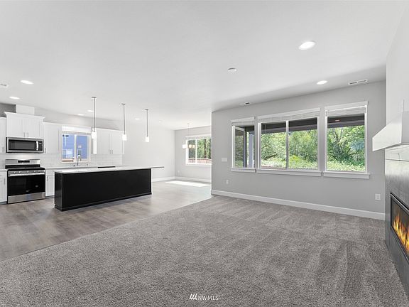 MOVE IN READY with BIG FULLY FENCED LOT!!! LAST ONE! Listen to the Puyallup River on the extended covered patio! This Mountain View Willow plan offers a gourmet kitchen w/ eating space. Carrara Marmi Quartz kitchen countertops & island. 3rd story bonus with 3/4 bath. Den located on the main. Laundry room is upstairs along w/ all 4 bedrooms. Primary suite features an expansive 5-piece bathroom w/ plenty of storage space provided. SS Appliances, prewired for AC , gas range, fireplace w/ mantle, legs & tile surround located in great room- with entertainment cabinets on each side. Shaker White painted cabinets throughout with Black / kitchen island cabinets. Close to shopping, bikeing and walking trails!