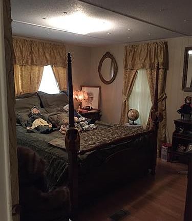 Cozy double wide mobile home tucked away on 5.02 wooded acres with 2 ponds. Home is blocked in with full length front porch, courtyard, fenced in back yard with a deck. Property has 2 out buildings, large circular drive, and a fishing shack. New Heat Pump, bonus room 10X24 attached to garage. Mobile home has been updated to include cedar siding and metal roof.