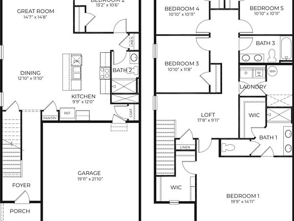 This Spacious and modern 5 Bedroom 3 Bathroom house with a two-car garage offers 2,500 sq feet of living space. Built in 2023, downstairs features a bedroom and full bathroom, making it the perfect setup for an in-law or guest suite. This provides convenience and privacy for your loved ones. Downstairs you will also find a spacious living room with a sliding back door opening up into the backyard, a dining area, and a beautiful kitchen with an island and stainless-steel appliances. Upstairs, you'll find four more bedrooms, a loft, two additional full bathrooms, including a large master bedroom with an ensuite bathroom and two walk-in closets. A washer and dryer are provided. Please note, that the photos shown are of a model home and paint color in the rooms may vary. Don't miss out on this fantastic rental opportunity.