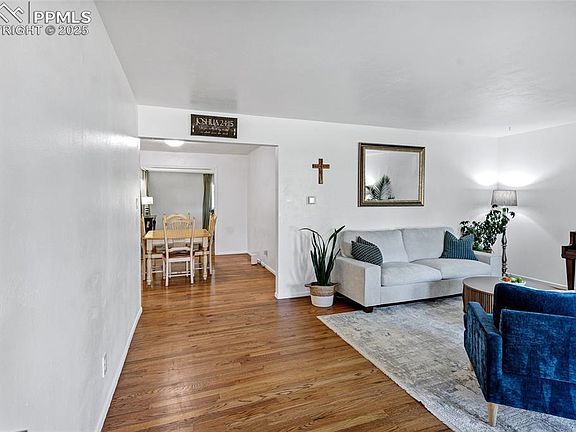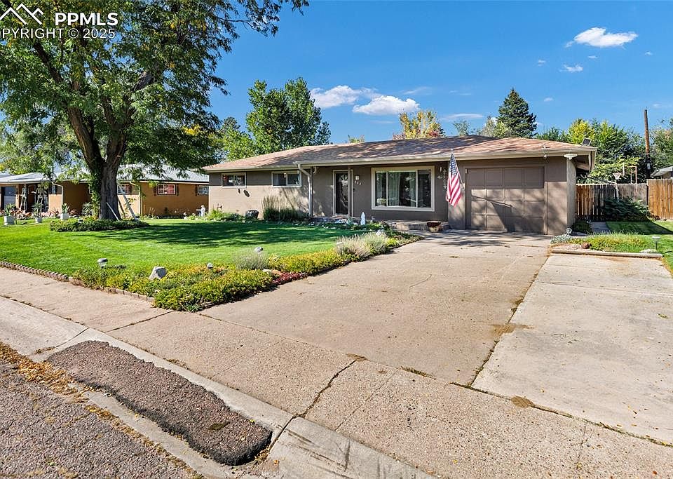 Welcome to this well-maintained 3-bedroom, 2-bath ranch home located on a quiet street just minutes from Fort Carson. Enjoy one-level living with beautiful hardwood floors, a spacious kitchen, and plenty of natural light throughout. The fully landscaped yard features mature trees and stunning views of Pikes Peak—perfect to enjoy from the covered back deck. Additional highlights include a 1-car garage, low-maintenance exterior, and a prime location close to schools, parks, and shopping. This home offers comfort, convenience, and Colorado charm all in one.