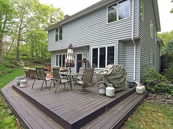 This lovely 3 bedroom, 2.5 bath contemporary colonial home is located on a nice lot in the desirable Maplewood area of Fall River MA near South Watuppa pond and the Tiverton line. Features include a great yard for entertaining with an in-ground pool with a large deck/patio area. The first floor features a living room with cathedral ceilings and hardwood floors, a family room with hardwood floor and a wood burning fireplace with access to the back yard and a large deck for entertaining, a half bath, a laundry room, and a kitchen with stainless appliances. Upstairs there is a master bedroom with french doors and a balcony, a walk in closet and a master bath, a common bath in the hall and two more bedrooms plus access to storage over the garage.