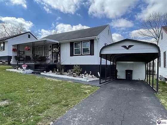 2 bedrooms and 1 bathroom on the main floor and a half bath with an additional 3 rooms in the walkout basement you can utilize as bedrooms (non egress) or family room/rec room. Exterior features include paved driveway, carport, covered front porch and fenced in backyard.