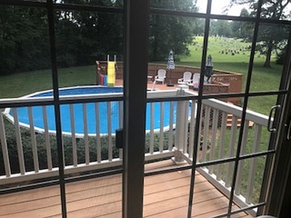 Come see this beautifully updated 4-bedroom, 3-bath, 1-1/2 story home, nestled in the woods on a dead-end street, at the edge of town. Features include: above ground pool w/deck, 2 fireplaces, granite countertops, tile showers, hardwood and tile floors, full finished basement, and detached 2-car garage, on 2 acres M/L. Washer, dryer and play/swing set will stay.