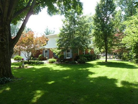 Fantastic move in condition 4 bedroom and 2.5 bath home. Family room with gas fireplace, kitchen is fully appliance with a counter top gas range, built in ovens one being convection, beautiful cabinets with lots of pull outs, extra large great room and a professional office, plus a large 2 car garage. This home is on a wooded lot with an unbelievable fenced in back yard with covered hot tub, and covered patio and fire pit. The back yard is professionally landscaped and is like being in a resort. The half bath in on the main level and two full baths upstairs one being in the master bedroom. This home has two zoned heating and central air for the main level and the upper level. The basement is neat and clean and has a batter back up sump pump and has been freshly painted. The electric service has been upgraded and the hot water system has humidifier , 2 pumps - one for each floor. All vinyl windows that tilt out for easy cleaning. Attic fan with thermostat controlled dehumidifier. Refrigerator, ovens, dishwasher are all newer stainless steel. This home truly shows much tender loving care and pride of ownership. Special list of upgrades are in mls system.