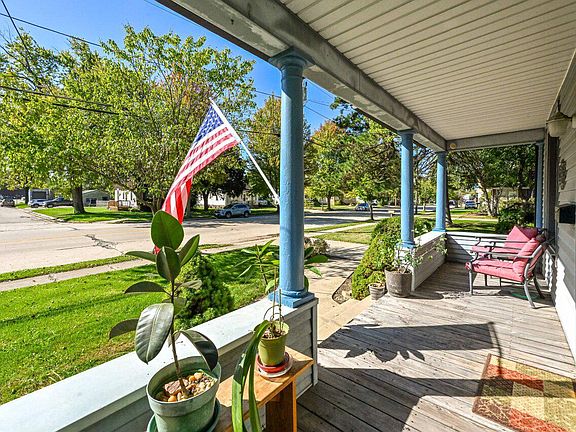 Step into the timeless charm of this roomy farmhouse, complete with a welcoming front porch overlooking Main Street. The first-floor features hardwood floors, natural woodwork, and a sun-filled living room with a large bay window. The entertainment-sized dining room with lovely chandelier and built-in China cabinets flanking the front window. The spacious eat-in kitchen offers ample cabinetry and a center island, opening to a cozy family room ideal for gatherings. A full bathroom completes the main level. Upstairs, discover five generously sized bedrooms with classic five-panel doors, four with hardwood floors. Outside, enjoy the landscaped yard with large deck and screened-in porch. A side drive leads to the 2.5-car garage, adding convenience to this charming home.