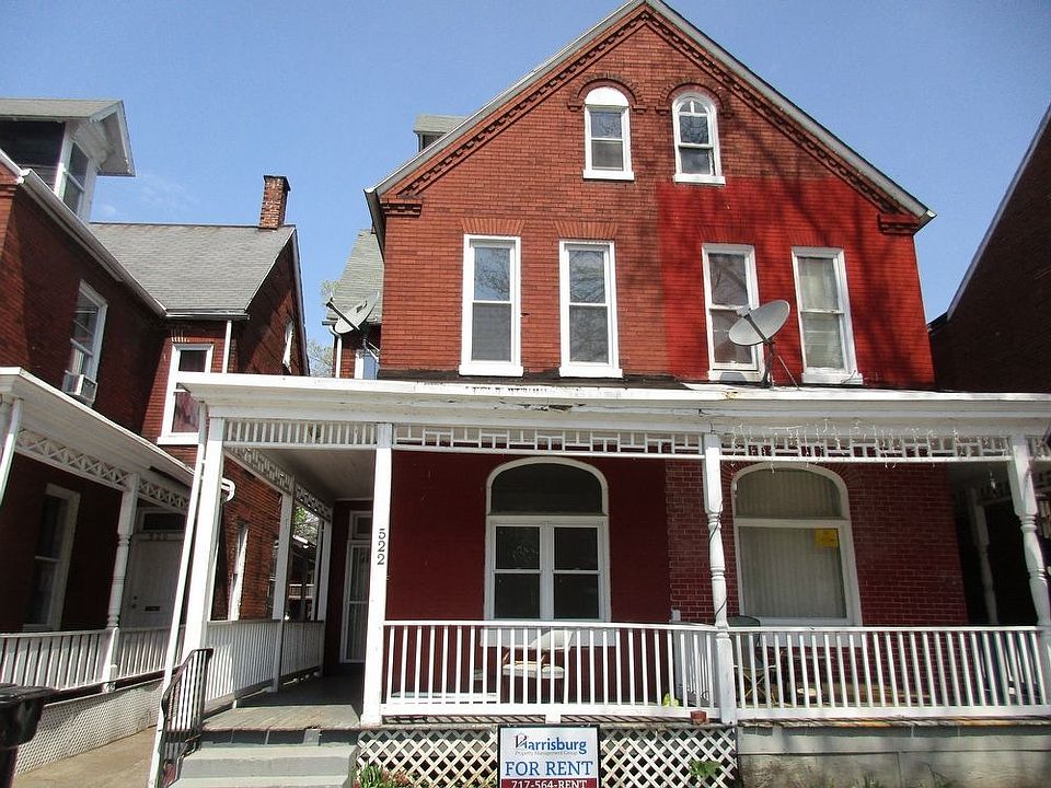 This 5 bedroom, 1.5 bath home is located in Harrisburg School District. Upon entering this home from the covered front wrap around porch, you enter the foyer. From the foyer, you can access the stairs that lead to the 2nd story, the living room, or the dining room. From the dining room, you can access the unfinished basement or the kitchen. The kitchen features a gas stove, a refrigerator, and a half bath room with your washer and dryer hookups. The 2nd story features 3 bedrooms and your full bath. The 3rd story features your final 2 bedrooms. Hardwood floors in the living room and dining room, carpet on the 2nd and 3rd story. Gas heat, hot water, and cooking. Residents are responsible for gas, electric, water, sewer, trash, lawn care, and snow removal. This house participates with the Section 8 program.