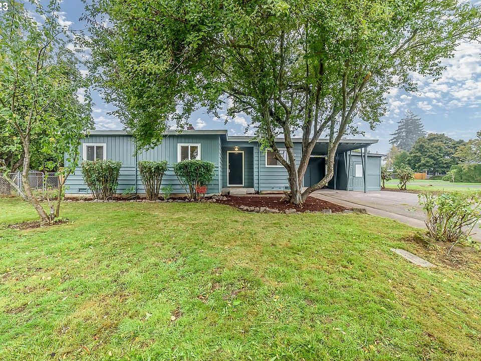Adorable mid century modern at an accessible price! With close proximity to Riverbend, this unique location is a part of the 4J school district AND has low county taxes! Boasting two bedrooms and a den that could be used as a third bedroom or an office, original hardwood floors, and a large corner lot, this property has so much to offer. First time to market in decades. Don't miss it! Open House Sunday 1:00-3:00
