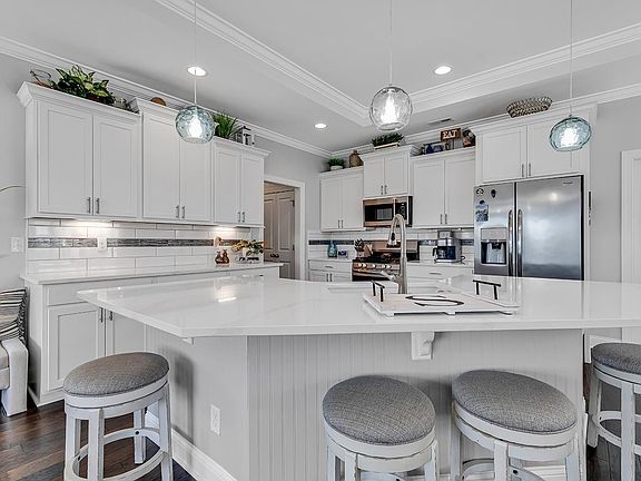 - Features: Breakfast Bar, Kitchen Island, Pantry, Stainless Steel Appliances, Solid Surface Counters