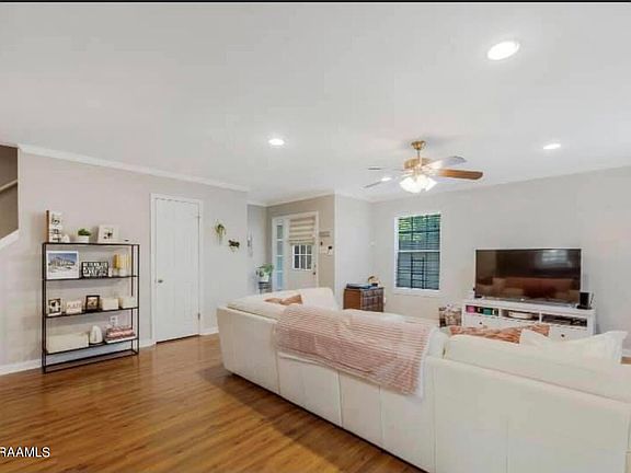 Location, location, location! Renovated in 2022, two-story townhome is directly across the street from the Lafayette Police Department, short distance to the University of Louisiana at Lafayette, Girard Park, and minutes from Lafayette General Hospital, restaurants, shopping, banks, and places of worship. Unit A, includes a yard, covered porch with private gate access. First floor is open to living, dining, kitchen with half bath, coat closet, and bonus storage under the stairs. Second floor includes washer/dryer nook off the landing, two spacious bedrooms with a shared full bathroom, each with spacious walk-in closets. The front bedroom has access to the balcony, which is located above the front entrance. Includes two assigned covered parking spaces and onsite locked mailbox.