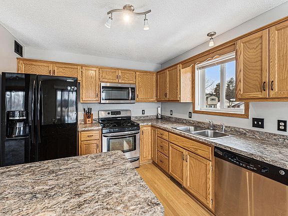 The one you have been waiting for! Step into this inviting home nestled in Braham's established neighborhood. Admire the deck overlooking the fenced backyard and private pond. With a recent roof replacement, enjoy the fresh paint, updated carpet, and gleaming hardwood floors. The kitchen features newer appliances, countertops, and cabinet hardware. Both levels boast full bathrooms with modern amenities. The basement offers a spacious family room with a wet bar, perfect for various uses. Experience thecharm of this home and its ideal location. Welcome home!