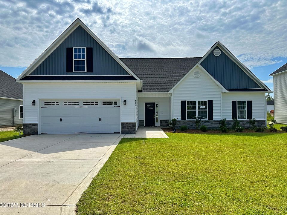 Welcome to the highly desired & popular community of Onslow Bay. Brand new construction built by Onslow County's most trusted & preferred builder, featured in Builder 100/ Top 200 Builders in the country. Onslow Bay is a hot spot, 3 miles to MCB Camp Lejeune's Piney Green gate, 14 miles to New River Air Station & minutes to area schools, shopping & dining. This beautiful neighborhood is sure to impress, complete with a clubhouse area & community pool. Welcome to the Sutton floor plan! 3 bedroom with bonus room/3-bathroom home with approx. 2283 heated square feet. A quaint porch area opens to a spacious foyer. The kitchen and living room are open to each other. The living room is approx. 16 x 16 and boasts a cozy corner fireplace. The living room also has a ceiling fan. The eat in kitchen features beautifully staggered cabinets, an island for extra seating and a 16 x 10 dining area with windows galore! Stainless appliances include a smooth top range, dishwasher, and microwave. The dining area opens to a 16 x 8 covered back porch. The master bedroom is approx. 15 x 14 and features a ceiling fan as well as a large walk-in closet. Relax in the grand master bath featuring a separate shower/garden tub, and a double vanity topped with cultured marble. Bedrooms 2 and 3 are prewired for ceiling fans. The 12 x 20 bonus room is that ''extra space'' you've always longed for: complete with its own bathroom! This charming floor plan is sure to impress. Separate laundry leads to 2 car garage, which is a great space to add some shelving for additional storage space! Enjoy a cup of coffee on the covered back porch. Also, a great space to hang out and entertain guests or display your favorite potted plants. Don't miss the chance to personalize this dream home. Upgrade: Single basin sink in kitchen. Call today! NOTE: Floor plan renderings are similar and solely representational. Measurements, elevations, and specs may vary in final construction. Call L/A to verify