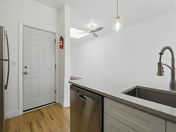 Welcome to 522 Jefferson St #3 – a spacious and inviting 1-bedroom home in the heart of Hoboken, renovated in 2022 for modern living. This well-maintained residence features a sleek kitchen with quartz countertops and stainless steel appliances, complemented by hardwood floors, classic trim, and molding throughout. A skylight brings in additional natural light, enhancing the home’s bright and open feel. Additional conveniences include in-unit laundry, secure intercom access, and a shared back courtyard—perfect for relaxing or entertaining. Ideally located just moments from parks, restaurants, shopping, and easy NYC transit, this home offers both comfort and convenience in a prime Hoboken location.