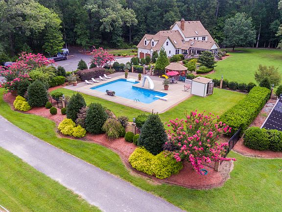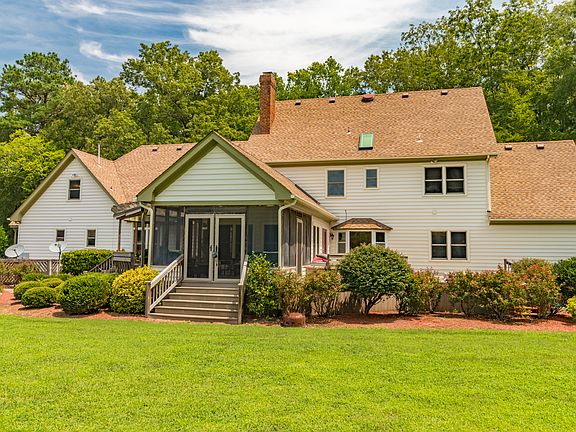 Tranquil upscale farm on 30 acres ready to move into; both two and four legged! Possibility of income producing use of barn/pastures. Home floor plan allows for many opportunities to accommodate multi-generations. Southern Chesapeake location within 10 minutes of shops and medical amenities at Edinburgh and also few miles from NC border. Ample horse show activities of different disciplines in surrounding areas. Barn is 75X40; 8 12X12 stalls (one converts to 12X24); hot/cold water wash stall, feed room, 12X24 lounge w/3 piece bath; washer/dryer; window ac/heat unit. Full loft with stairs; Kinetico water system. Detached Garage 40X50; half bath with RV parking/dump setup; current 5 pastures interconnecting. Riding ring. Pool shed, 44000+- salt water pool, gazebo, koi pond with sand filter system. Irrigation system for flower beds and some lawn.