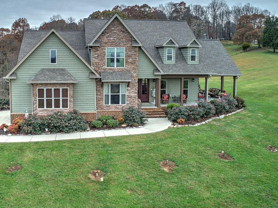 Stunning Custom Craftsman built home on 3.47 acres with amazing views. This is a must see home with high end features through-out the home, high soaring cathedral ceiling in massive sized entry & great room with beautiful stone fireplace, huge main level kitchen with custom cabinets & granite counters, kitchen is open to living & dining areas, large main level master suite with large walk-in closet, main level laundry room & lower level laundry hook up, beautiful custom staircase open to great room. There's a sitting area at the top of staircase that's open to great room, tongue and groove pine board ceilings through great room, upstairs there's 2 large bedrooms & a bonus room that can be used as another bedroom, full finished basement that's a must see with an in-law suite with a 2nd full kitchen, large room used as a bedroom but no window, massive living area with custom ceilings, A Must See! Main level garage with built in cabinets, enormous vaulted covered side porch with tongue and grove pine board ceiling & TV mount & beautiful landscaping. Schedule a showing today for this one of a kind home, property also offers a barn and could have horses.
