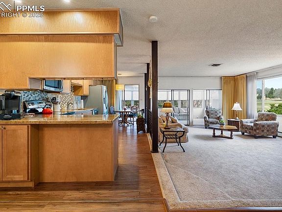 An exceptional opportunity for low-maintenance living with golf course views! This spacious 2-bedroom, 2-bathroom home offers over 2,100 square feet of main level living, including main level laundry for true convenience. Backing directly to Valley Hi Golf Course, you’ll enjoy peaceful views with no backyard neighbors. Inside, you’ll find brand new carpet and vinyl flooring, a functional, open layout, and tons of natural light from large windows throughout. The cozy living room features a wood-burning fireplace, perfect for chilly Colorado evenings. The sunroom overlooking the fairway provides a bright and flexible space for relaxing, reading, or entertaining. The kitchen and dining areas flow easily together, and both bedrooms are generously sized with ample storage. Step outside to a private patio with room to unwind while enjoying the views. This home also includes a 2-car attached garage, and is located just minutes from downtown Colorado Springs, parks, shops, and walking trails. Homes like this—single-level, move-in ready, and in a prime location—don’t come up often. Schedule your showing today!