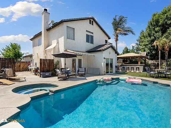 Impressive Seven Oaks home in the Windsor Park Neighborhood with PAID SOLAR and a pool!! There is a formal living room, dining room and an eat in kitchen adjacent to the family room that has a fireplace. This 2-story home features 4 bedrooms and 3 bathrooms with one of the bedrooms and bath conveniently located downstairs. The primary bedroom offers a separate shower and tub with a large walk-in closet. Home features granite counters, hard wood floors and newer carpet in some areas. The large exterior backyard has newly installed turf and a Pergola with a built in BBQ. Pool was resurfaced with new pool tiles and pool pump just a few years ago. The Garage has built-in cabinets. There is also a dog run. Located close to CSUB, shops, restaurants, great schools and walking distance to Windsor Park. The HOA covers a security person who drives the area regularly. Ideal Home for your family! Seller will help with buyers closing cost and/or upgrades based on offer.
