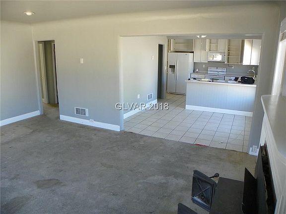 Wood burning stove in living room. Open floor plan. Kitchen has breakfast bar, white cabinets and tile floors. Fully fenced yard and detached garage.