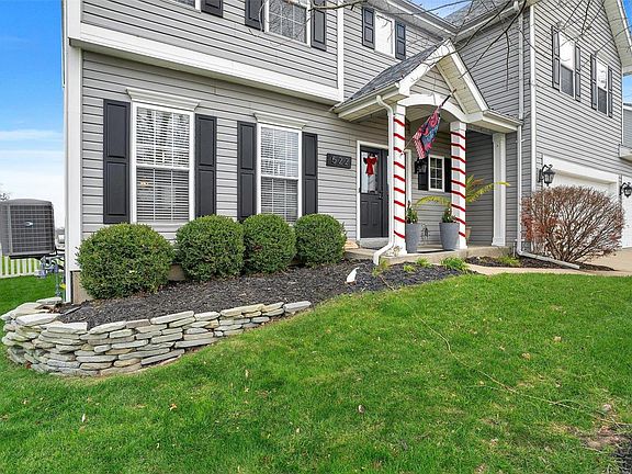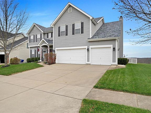 Beautifully updated home on a premium lot in the Legends Golf Community! Excellent curb appeal w/Architectual shingles, covered porch, 3-car garage & low maint. landscaping. Walk inside to neutral colors, newer carpet, upgraded moldings, bright spaces & tall ceilings. Entry foyer is flanked by a formal LR w/curved entryway. Formal DR includes bay/bow window. Gourmet, eat-in kitchen is improved w/refinished wood floors, 42 in custom cabinets, recessed lighting, granite counters, breakfast room, SS appliances, gas range & large center island. Spacious FR off the kitchen offers a brick surround fireplace & bay window extension. Main floor 1/2 bath. Upstairs is a HUGE loft area w/vaulted ceilings, large MB suite w/updated master bath, 3 add. BR's all with private bath access & a 2nd floor laundry. Out back you'll find one of the best lots in the community w/a flat, fully fenced yard, sweeping views of the Meramec river valley & large concrete patio. LL is ready for finishing.