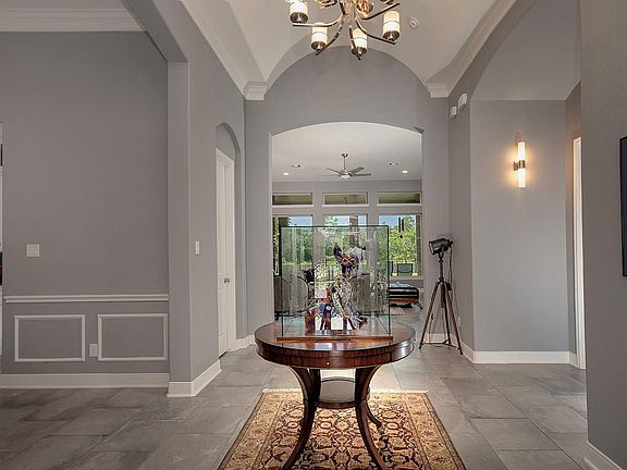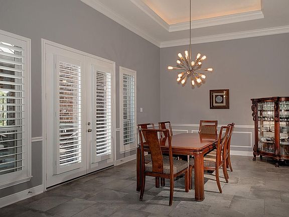 Waterfront one story J. Patrick home in the gated community of Woodtrace! Gated courtyard entry with cozy fireplace, 3 car tandem garage, Plantation shutters, beautiful foyer with barrel ceiling, soft, neutral paint palette, large format tile floors, Generac generator, and stunning lake views throughout the home. Open concept island kitchen with breakfast bar, quartz counters, stainless steel appliances and glass front cabinets with undermount lighting opens to the sunny breakfast room with built-in desk and den with wall of windows overlooking the lake; formal dining with chair rail and tray ceiling; study has French doors; owner's retreat with sitting area and luxurious bath; three spacious secondary bedrooms and game room too! Covered patio overlooks the expansive yard and serene lake. Woodtrace amenities include a recreation center with pool, clubhouse, 5 miles of greenbelt trails and a 23 acre spring fed lake with fishing dock and a place to launch kayaks.
