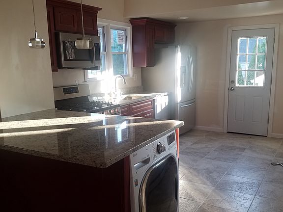 Recently Renovated Charming Colonial. Gas heat. Brand new Eat-in Kitchen and main full bath with jacuzzi. Hardwood flooring throughout. Convenient first floor bedroom & full bath. Two car detached garage. Easy access to NYC train, public transportation, major highways, schools and airport..