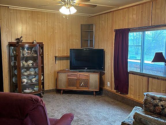 Enjoy the country charm of this two bedroom one bath mobile home on a corner lot on the edge of town. Beautiful mature willow trees, plenty of room for a garden, parking and outside storage buildings. Sale comes with everything you need, washer, dryer, fridge and freezer!