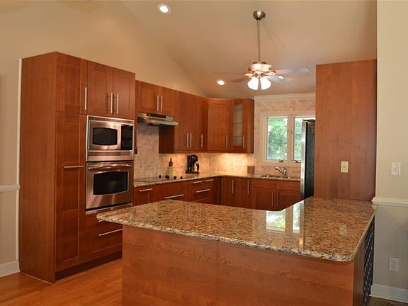 - Kitchen Features: Breakfast Bar, Cabinets Stain, View to Family Room, Stone Counters, Wine Rack