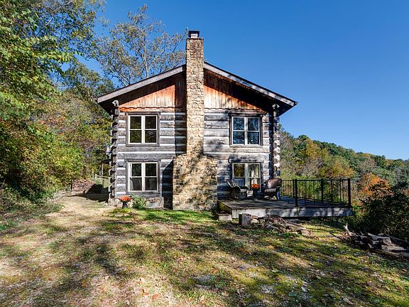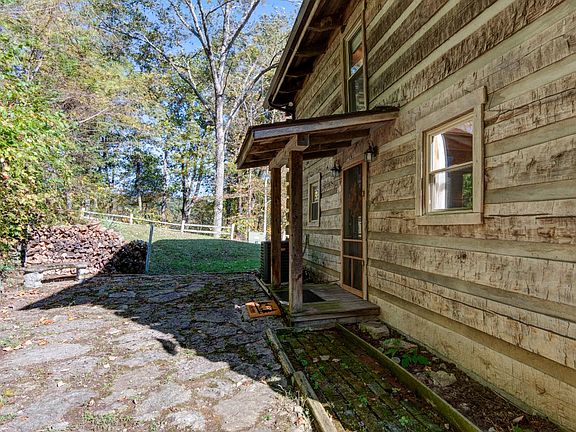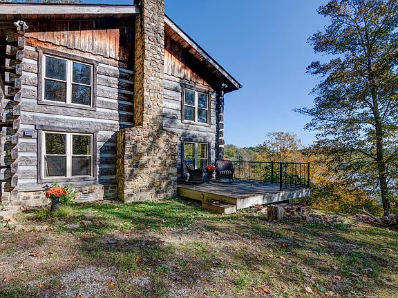 Stunning log cabinStriking floor-to-ceiling stone fireplaceGranite countertopsOpen layoutAdjoining versailles state parkRich hardwood floorsHandcrafted wooden staircase