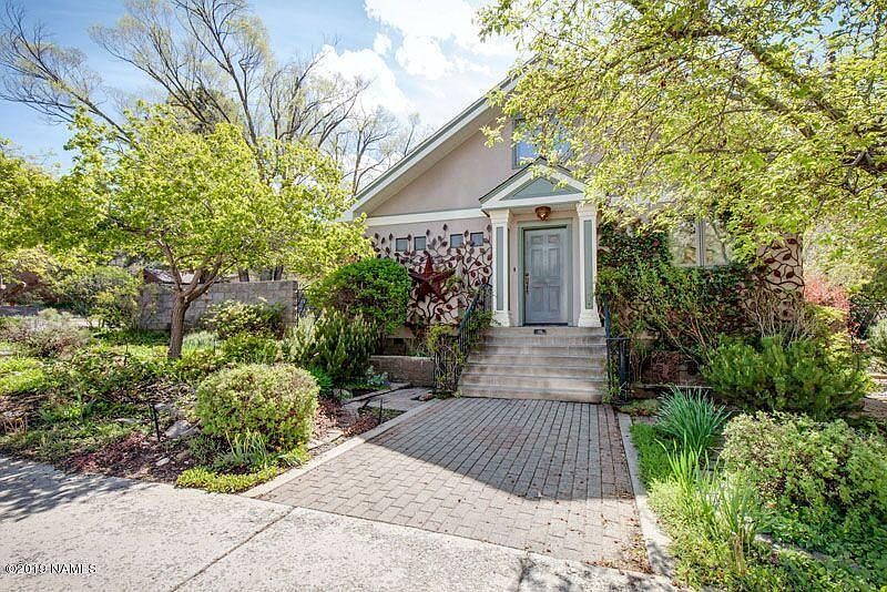 Rare opportunity to own the most sought after real estate scenario in DOWNTOWN Flagstaff! This home encompasses historic elements from 1929 & newer components, making it a special sanctuary home with both history & modern conveniences. Corner property spanning 3 city lots with oversized 2 car garage, + outdoor RV parking! Stained glass, antique metal & glass block touches, along with antique light fixtures & artistic iron work give the home character & incredible charm. 2 separate lush courtyard patios with plenty of room for outdoor, PRIVATE entertaining and meditation. There's even a separate entrance, 10'x26' potential bedroom/workshop/home office space over the garage that can be converted into whatever your imagination creates. Easy to view & ready for summer enjoyment in Flag!