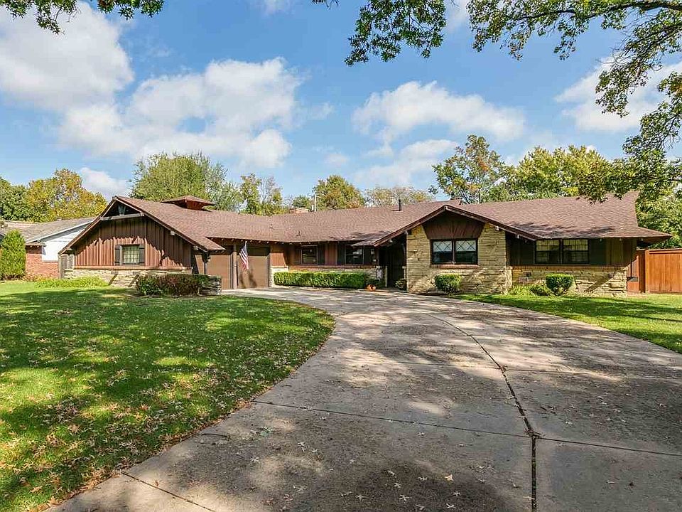 Stately home in Woodlawn Village! Mature trees line your large lot, with the home situated far back from the road. Large rooms at every turn, with an open, modern floor plan with the charm of this neighborhood! Slate tile greets you as you walk inside. The kitchen, fit with granite countertops, plenty of cabinet space, two eat-in bars and a breakfast nook. The gorgeous built-in China cabinet in the formal dining room is a statement piece, connecting the formal family room and the cozy, inviting den complete with gas fireplace insert. The sunroom makes it easy to enjoy the outdoors, indoor all year round. Three bedrooms, including the master, anchor one wing of this grand home and the fourth bedroom on the other wing, attached to an additional living area that gives generous space for a small library or sitting room. The attached two car garage also boasts a workshop. Privacy at its finest in your own backyard - complete wood, privacy fence and plenty of space for loads of outdoor entertainment. Complete with sprinkler system, and always well maintained and manicured - your landscaping is sure to always looks plush and green. Don't miss your shot to call one of Wichita's hidden gems of a neighborhood home!