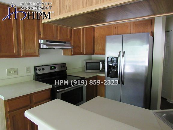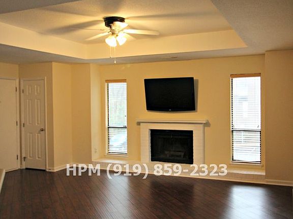 2 Bedrooms, 2 baths. Kitchen includes dishwasher, stove, refrigerator. Master suite has walk-in closet and garden tub. Washer and dryer included. Fireplace. Deck. Overlooks green-way. Water included in rent. Tenants may join the Kildaire Farms pool at their expense. Approximately 1,125 square feet.