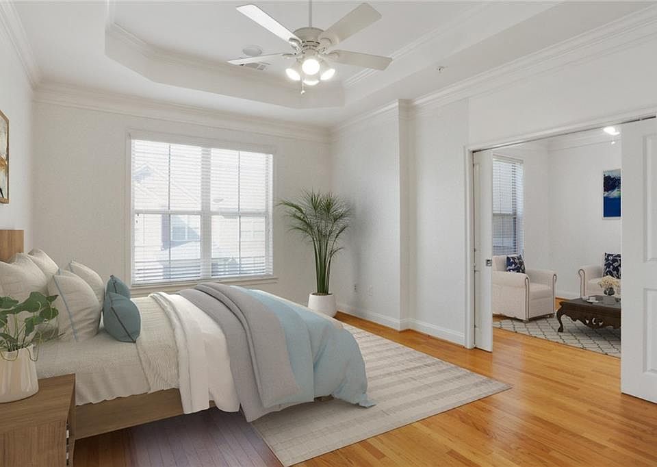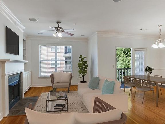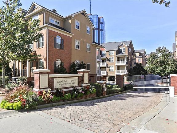 Immaculate, spacious, convenient and open characterize this low-maintenance 3-bedroom townhome in desirable Georgetown at Perimeter Walk. Enjoy the benefits of being in a neighborhood (pool, security gate, gas grills, grassy area for puppies) with the convenience of being in the heart of Dunwoody and Central Perimeter business district with MARTA, shops, restaurants, Target, Perimeter Mall at your doorstep. Enter through the beautiful landscaped courtyard and find a newly painted home with hardwoods throughout, high ceilings, open kitchen with breakfast bar and view of fireplace with built-ins, balcony with view of trees, main level guest suite, two upstairs master bedrooms (one with sitting/office area) with en-suite baths, extra lower level flex room ideal for a home gym/office/media room, walk-in custom closets (including walk-in shoe closet), plenty of storage and more. Very lightly lived in due to frequent work travel. Won't last long.
