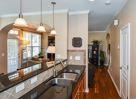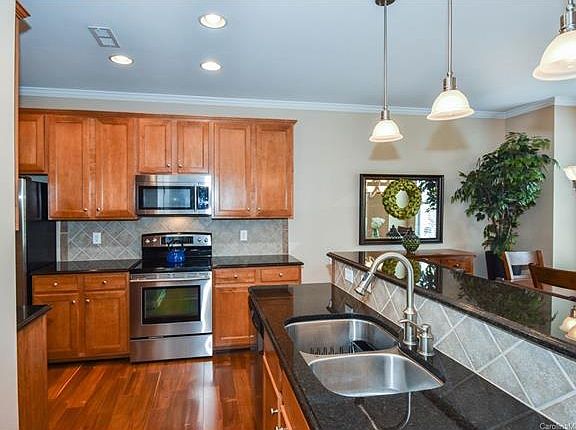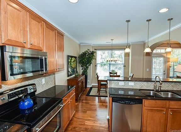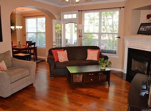 Picture perfect townhouse w/ rare two car garage - Wood floors on main level - Gas log fireplace - Open kitchen w/stainless, granite, tile backsplash and upgraded cabinets and lighting - Large Dining area - Private back patio w/ landscaping - Huge master suite w/ walk in closet, private bath with raised his/her sinks, water closet, shower, garden tub and private balcony - Generous secondary bedrooms w/ ample closets - 2nd floor laundry - Quiet community surrounded by Golf Course- This is a must see!