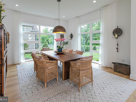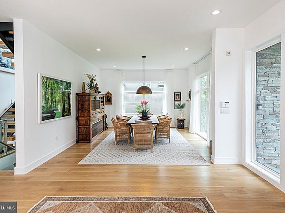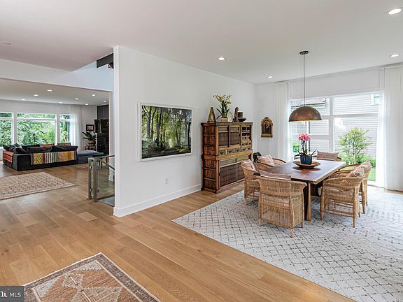 This recently-built modern masterpiece enjoys a premium location between Carnegie Lake and the campus of Princeton University. The Riverside neighborhood is prized for its large lots, old growth trees and low-traffic serenity, an attribute not often found this close to so many attractions! In line with the level of luxury one would expect of this address, the striking residence is the pinnacle of chic style, top-tier quality and effortless functionality. New plantings, a circular hot tub and sculptural arches soften the crisp lines of the overall architecture and stone patio. Remarkably tall windows bring the scene indoors and make the open layout with 10-ft ceilings and seamless white oak floors even more dramatic. With waterfall-edge Quartz atop lacquered cabinetry, the chef-pleasing kitchen is polished enough to share space with the great room's gleaming fireplace statement wall. Style-forward design features such as this are perfectly complemented by thoughtfully chosen decor found throughout the versatile floor plan. There are a total of 5.5 Porcelanosa bathrooms, including one within a main level office/bedroom and one downstairs serving overflow guest space and a totally tricked-out rec room ready for lively activity and sports. Take the glass and steel-edged floating staircase, which never fails to impress, up to the main suite, where treetop views grace the bedroom with double walk-ins, as well as the modern bathroom with oversized tile enveloping a spa-worthy tub and decadently-sized shower. A bonus room and laundry join 3 more bedrooms, all of them sunny and spacious. This is truly an exquisitely designed home.