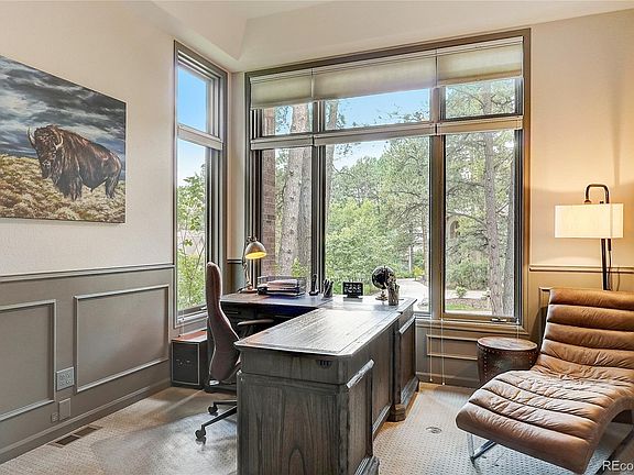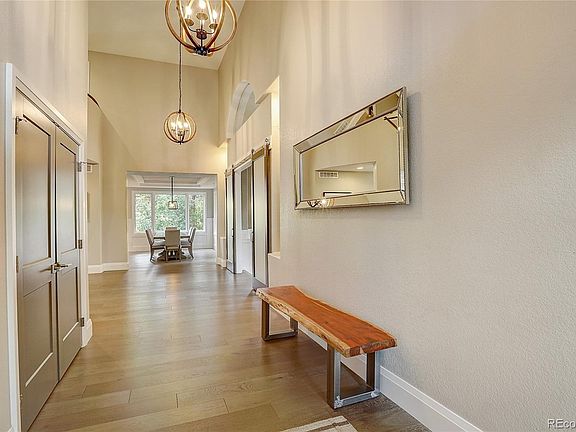 Beautifully remodeled home in the Village at Castle Pines! This home is situated on nearly an acre lot with towering pines and plenty of privacy. The interior has been tastefully updated featuring custom trim work, hardwood floors, designer tile, quartz countertops, and custom built-ins. The chef's kitchen features a large island for entertaining with high end appliances and spectacular view of the backyard. The rear patio features a built-in bbq with a firepit and and a sheer decent water feature. The backyard is flat and large which is perfect for gathering and playing backyard games. The main floor features two private offices with custom millwork and stunning windows, perfect for those who work from home. The basement has a large exercise room for those fitness enthusiast. If you are a car enthusiast, check out the massive heated 5 car garage. There are too many upgrades to mention, this home is truly spectacular and won't disappoint.