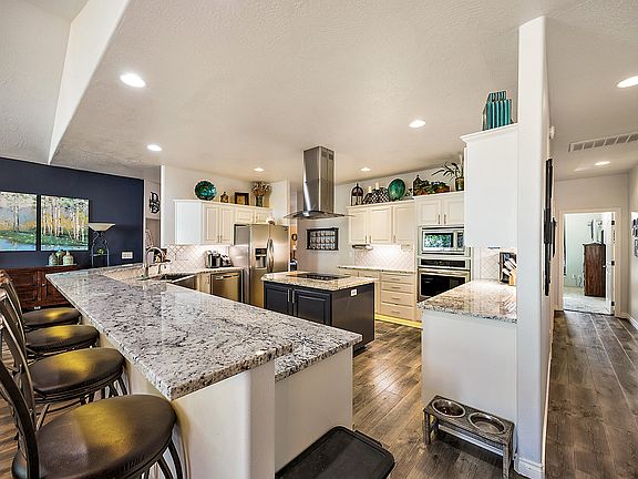 HUGE PRICE REDUCTION! Spectacular 4-bdrm home, peaceful cul-de-sac in Central Point's White Oak Estates. Home is immaculate! Open plan, spacious great room, gas fireplace with beautiful quartz surround, and vaulted ceiling. Kitchen with accent lighting, granite counters, large breakfast bar and island, cook top, microwave and wall oven. There's a dining nook, formal entry, with French doors to the 4th bedroom or office, large windows, lots of light, and a central vac system. Primary bedroom features double doors, coffered ceilings, multiple walk in closets, and access to back patio. Fabulous bathroom with soaker tub with separate sinks, quartzite countertops, large walk-in shower, instant hot water and heated tile floor. This is a great layout with split floor plan and all living space on one level. Private back yard OASIS great for entertaining with gazebo, built-in BBQ, firepit, shed & water feature. There's extra parking or possible RV parking. Lots of upgrades, a must tour