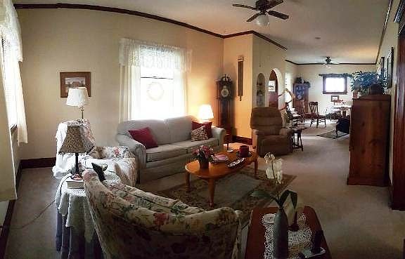 Attractive Craftsman style home located on quiet corner lot in Albia, IA. This 2-bedroom 1-bathroom home offers 1,156 square feet of living space on the main floor and a full, unfinished basement with unlimited possibilities. Some features of this home include original wood trim, tall ceilings, a large, open living and dining room, and galley style kitchen with a breakfast nook. All appliances stay with the home. The exterior of this eye-catching property has been well-maintained with vinyl siding featuring brick columns in the front, a ramp for handicap access, 1 car detached garage, and a large flower garden creating a semi-secluded back yard to round out this charming property.