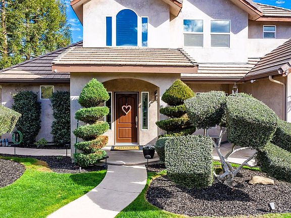 Elegant custom home in premier Kerman neighborhood! You'll appreciate the attention to detail taken inside and out of this gorgeous 4 bedroom, 3 1/2 bath home. The floor plan features a lower level master bedroom with an expansive en-suite, spa tub, separate shower and walk-in closet, plus an isolated junior master bedroom with a nearby bath. Enjoy entertaining in the grand living room which features two story high ceilings and is open to both the eat-in kitchen area and formal dining room. You'll be the center of attention in the gourmet kitchen which offers granite countertops, breakfast bar seating, center island with sink, sub zero fridge, double ovens, 5 burner gas cooktop and walk-in pantry. Upstairs you'll find two additional bedrooms, a huge loft area and full bath with double sinks, and tub/shower combo. The dual HVAC system and Solar lease are part of this home's energy saving features. Outside you'll be spoiled with the luxury pebble sheen, salt water pool, in-ground spa, natural gas hook-up for BBQ, large covered patio, and additional play area. The home also includes a 3 car garage and plenty of off street parking, even for your RV.