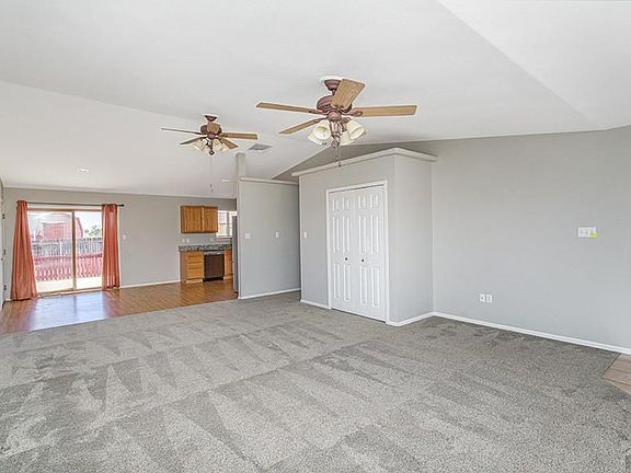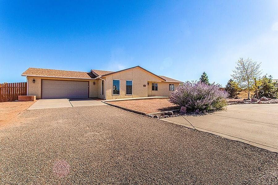 Well-maintained home located on a corner lot in Pueblo West on 1.07 acre. Close to amenities off of Purcell and a short drive to town. Don't overlook the paved street and wood privacy fence. Lots of parking on either side of the house or behind two large drive-in gates. There are no steps into the house (including from the garage) with ramps built to the front door and off of the large back patio. Also take note of the wide hallways, wider doorways and the walk-in master shower. Attentively landscaped property with large trees, fenced in garden area in the back and a smaller concrete one in the front. Large shed with concrete floor and an overhead door for easy access. Inside find freshly cleaned carpet, stainless steel appliances, granite countertops and vinyl flooring in the kitchen. 576 sq. ft. garage is totally insulated and drywalled. Pocket door to the hall bath. Tile entry at the front door. Open living space with vaulted ceiling and lots of windows gives an open and inviting feeling to the living room and entry. Don't miss the circle drive in front.