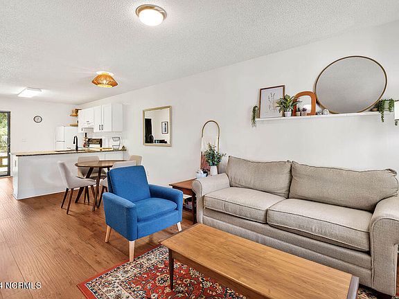 This 2-bedroom 2 full-bath first-floor condo in Candlewyck is turnkey, comes fully furnished and it is perfectly situated close to where you need to be - whether it's the beach, UNCW, historic downtown Wilmington, and/or popular eating establishments. Inside there are several fresh updates including beautiful Mohawk RevWood premium laminate flooring with lifetime water protection and lifetime All Pet warranty throughout, granite countertops, new cabinet doors and new light fixture in the kitchen/dining area, new hot water heater, and new vanities, light fixtures, and mirrors in both bathrooms. Furnishings that convey include a 55-inch mounted smart TV in the living area and a 43-inch mounted smart TV in the primary bedroom. The primary bedroom also has a large walk-in closet. In the back there is a private covered patio overlooking the tree lined landscape. This fantastic unit is perfect for a primary residence or investment. The sellers rented the unit through Furnished Finders and had up to $2,600 a month in rental revenue.