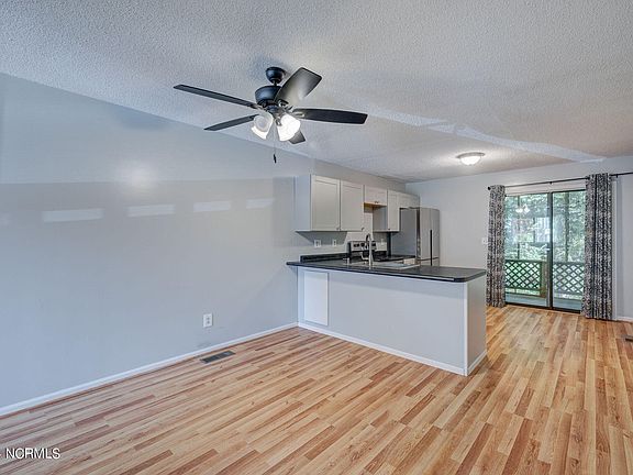 Updated, bottom-level unit in Candlewyck presents a fantastic investment opportunity. Nestled at the back of the complex, it offers serene wooded surroundings and a private screened-in porch. Its central location provides easy access to UNCW, historic downtown Wilmington, and Wrightsville Beach. Move-in ready with Fresh paint, updated cabinets and counter and stainless kitchen appliances!