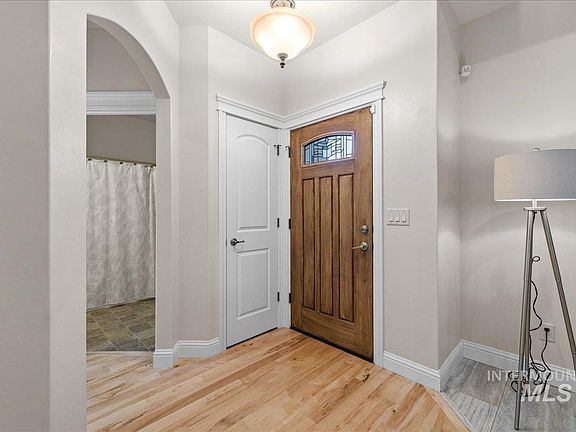 Beautifully maintained 3-bed (or 2-bed plus study) home in small, quiet 55+ community. Home has many upgrades compared to others in the sub: cabinets, countertops, flooring (no carpet!) & appliances. All hardwood, tile and upgraded LVP floors. Raised garden beds with new drip system. Enjoy the covered patio with ceiling fan on summer evenings; the jetted walk-in tub for relaxing; and the year-round maintenance-free lifestyle in this lovely home and community! HOA covers yard maintenance, park, pond, clubhouse with gym and library. Terrific location: easy access to Boise Towne Square Mall, health care, gym, parks, freeway & connector. Free city tennis courts & pool close by! VA loan assumable by anyone ~ veteran or not ~ at 5.75%.