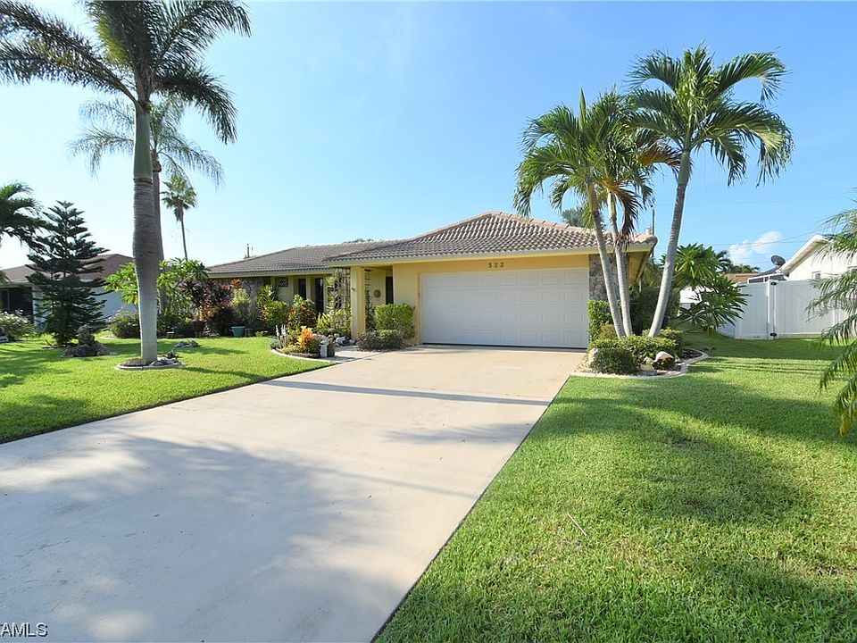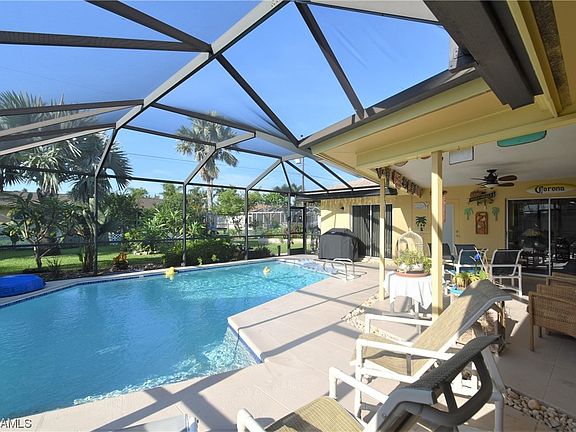 This is a lovely 4 bedrooms, 2 baths pool home, beautifully landscaped by the owner in a quiet and well established residential neighborhood. The home offers a separate living and family room area. The kitchen comes with stainless steel appliances, granite counter tops and wood cabinets. Tile floor throughout the house. Entire house has been recently repainted inside. Plenty of storage in the huge laundry room with lots of cabinets and a laundry tub. Guest bath is also a pool bath. There are four separate sets of sliding doors leading to the pool area. Relax in the heated pool in your screened lanai with plenty of space to entertain family and friends. The pool has been resurfaced and a new pool heat pump installed in 2018. Backyard is all fenced in for your kids and furry friends. Tile roof. The location is fantastic, close to downtown Cape Coral with easy access to Fort Myers and the beaches. All assessments are in and paid. Nothing left to do but move in and enjoy this home and what Southwest Florida is all about! Come and take a look, you will not be disappointed. Seller Motivated. Make your appointment today!