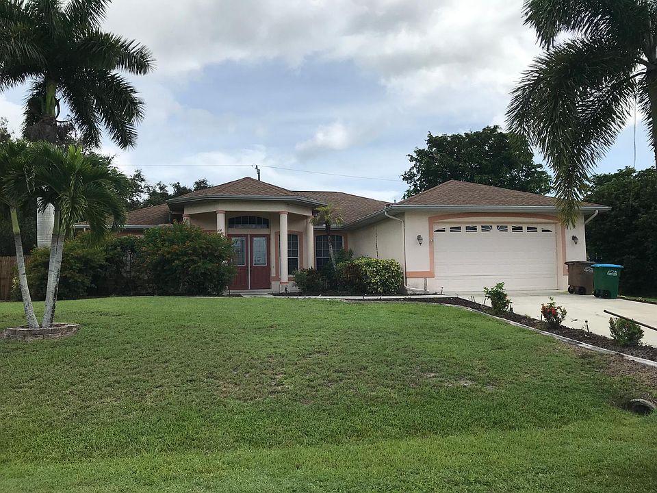 Beautiful home located on a 3-lot site with mature landscaping and a fenced yard. Enter through the double door entrance into the large great room with high ceilings and hurricane sliders to the pool and lanai area. Off to the right of the entrance is a large den or office that could be used as a 4th bedroom. The galley kitchen is fully equipped and ready for the chef in the family. Huge master features sliders to the lanai and pool area, 2 walk-in closets, dual sinks, separate tub and shower and is open and bright. The split floor plan has the 2 guest bedrooms on the opposite side of the home. The lanai area features a stamped deck and a screened pool for year-round pleasure. You also have plenty of room to spread out in the large backyard. This home is freshly painted and has ceramic flooring through all house. Come and see it today. Please call Dan at