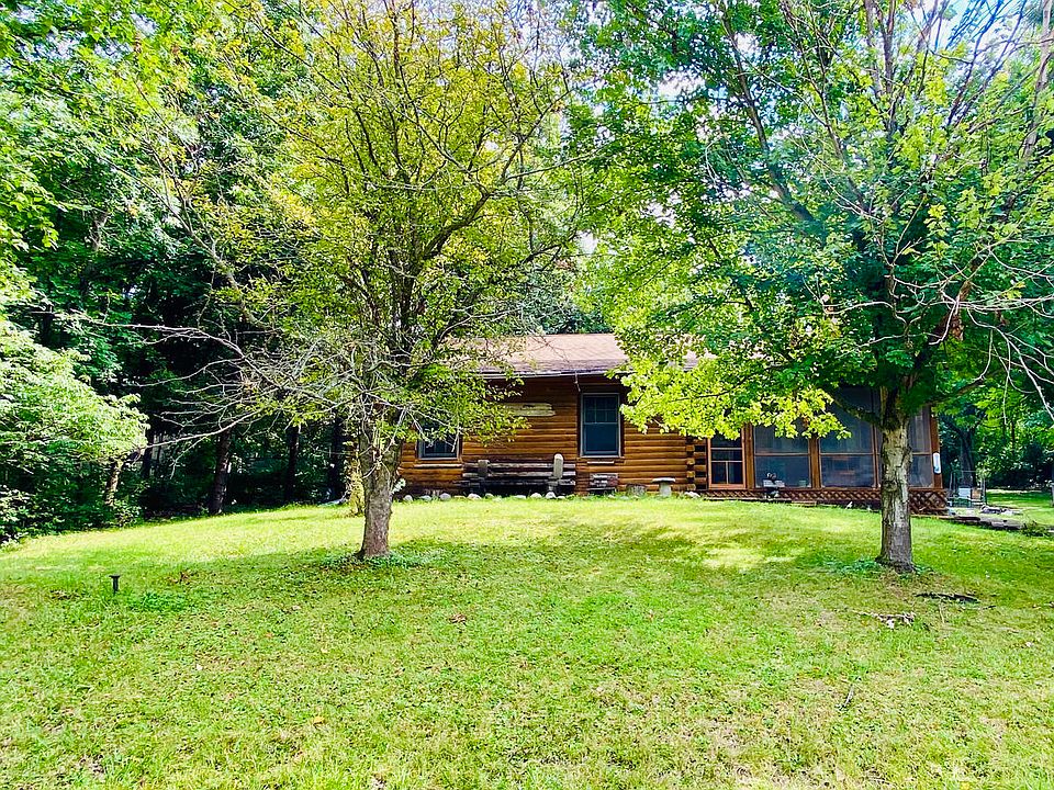Welcome to your dream log cabin retreat in the highly sought-after Lost Lake community! Nestled amidst nature's beauty on a double lot, this charming cabin offers the perfect blend of rustic elegance and modern comfort. Enjoy exclusive access to private beaches, swimming, fishing, and boating just steps from your door. Also included is membership to the beautiful Lost Nation golf course. The home boasts a warm, open-concept living space with vaulted ceilings, exposed beams, and a cozy fireplace, perfect for relaxing after a day at the lake. Sit on the enclosed front porch to enjoy your morning coffee or unwind in the evening while surrounded by the peaceful sounds of nature, rain or shine. With three spacious bedrooms, two full baths, and an outdoor patio, this home is perfect for gatherings or peaceful solitude. The property is surrounded by mature trees, offering privacy and the serene sound of nature. This rare opportunity to own a cabin in Lost Lake won't last long-make this retreat your permanent escape!