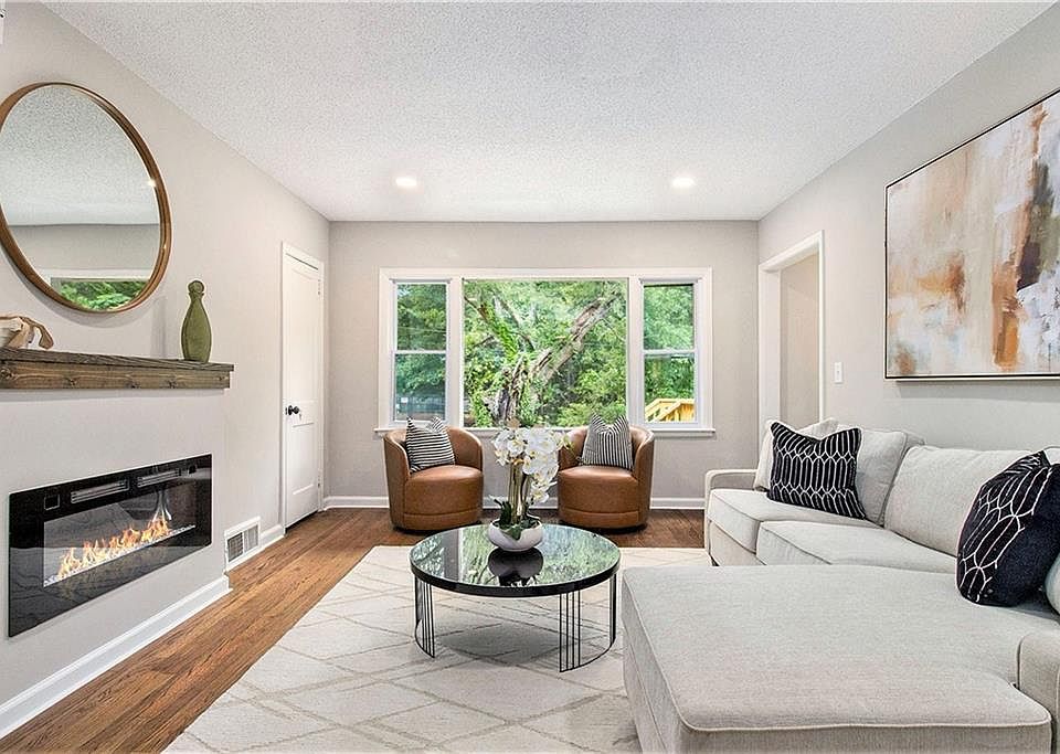 A Private Retreat Just Minutes from Downtown Woodstock Tucked away on a peaceful, level ¾-acre lot, this rare ranch-style home offers a quiet escape with all the charm and character of a woodland hideaway—yet it's just minutes from the vibrant shops, restaurants, and events of Woodstock. Beautifully renovated and Move in ready! In the tax records this is a 4-bedroom home, two bedrooms were thoughtfully combined to create a spacious master suite—a serene sanctuary set apart on one side of the home for added privacy. Need four bedrooms? The layout offers the flexibility to easily convert the space back. Inside, original 1950s hardwood floors add warmth and history, flowing through sun-filled living spaces. The cozy sitting room features a fireplace and a picture window that frames one of the property’s most beautiful trees—perfect for quiet mornings or golden-hour lounging. The kitchen is both stylish and functional, featuring brand new soft-close white shaker real wood cabinetry, stainless steel appliances, and a bar-height counter for casual meals or coffee chats. Both full baths are well-appointed—one with a garden tub for soaking, the other fully renovated with fresh, modern touches. Step outside to a spacious screened-in patio, ideal for dining al fresco or simply enjoying the sounds of nature. The backyard includes two additional structures—a storage shed and a gazebo-style outbuilding that could easily become a she shed, man cave, or creative studio. With fresh paint inside and out, a newer roof, fruit trees, ample parking for company and if you own a business it's great additional space for equipment etc. No HOA, this home is full of both charm and possibility. Whether you're looking for peaceful living, future flexibility, or just a beautiful place to land—this hidden gem checks every box.