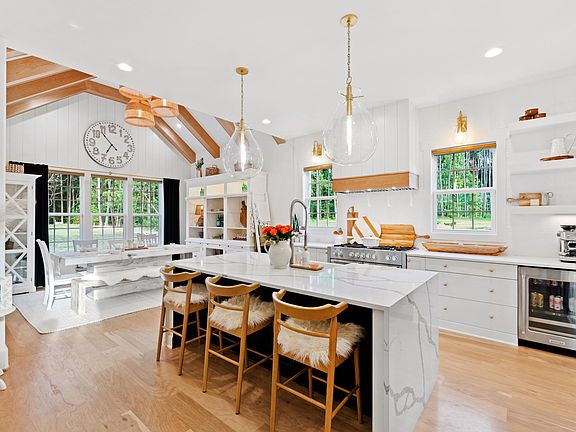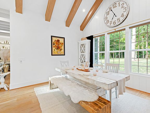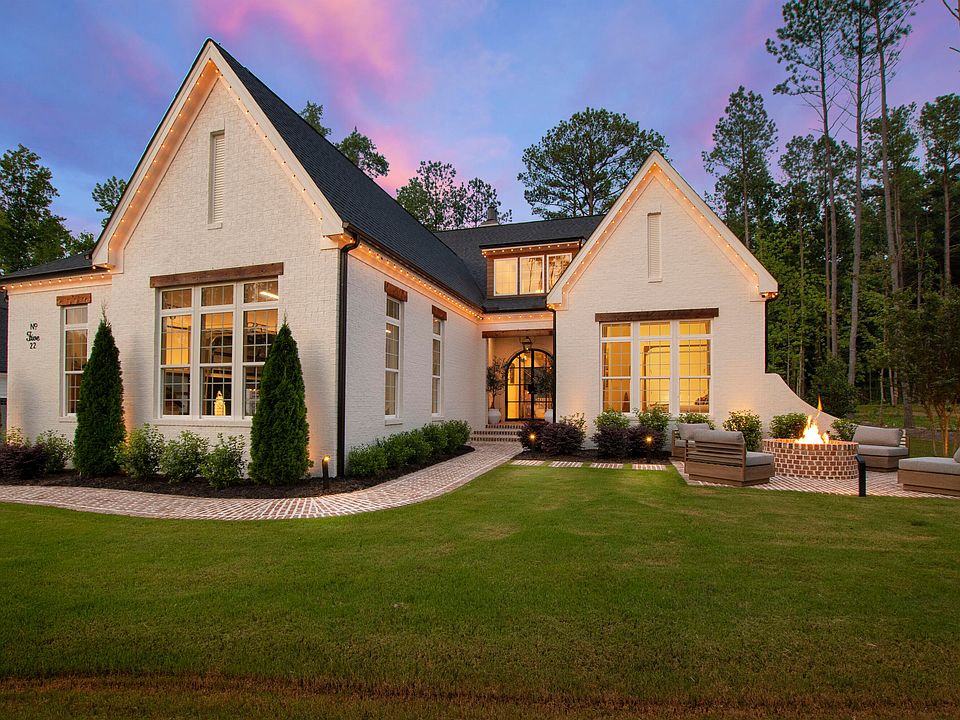 Welcome to the perfect marriage of captivating ambiance and decadent design. Elegant and sexy, this chateau is nestled on over an acre of impeccably manicured lawns and surrounded by towering hardwoods, creating an oasis that feels like a world of its own. Situated in the coveted community of Stonecrest at Norwood, you'll experience a private, serene lifestyle with a community atmosphere and the conveniences of Chapel Hill, Carrboro, and Jordan Lake at your fingertips. As you head up the brick-laid walkway, you'll encounter remarkable character, from the architecture to the double black entryway inviting you to discover a scene straight out of Architectural Digest. With over 3,500 square feet of living space, you'll find unparalleled craftsmanship at every turn. Step inside to be greeted by a grand two-story entry with soaring ceilings and a seamless layout for everyday living. Your main floor living area offers a tucked-away mudroom oasis with abundant storage and first-floor guest suite. A moody office space for your creative mind leads into an enchanting living area with wood beams and modern finishes. The accordion doors take you to your screened porch, where the perfect harmony of indoor-outdoor living is realized. In your kitchen, you'll discover high end appliances, a 48'' Aga Mercury imported range, quartz countertops, a waterfall island, and a pantry tucked away for all your needs. Down the hall awaits the lavish owner's suite, adorned with extravagant millwork, a luxurious bath, and a custom closet that maximizes space and storage. Upstairs offers a charming loft with the cutest dollhouse nook, two generously sized bedrooms, each with a private bath, and a full gym equipped with an infrared sauna. Additionally, every wall in this property is properly insulated to provide energy-efficient living and a quiet lifestyle. This home is also equipped with an Aqua Sauna water filtration system. And if this home has yet to check off all your boxes, step out to your private backyard with a sports court, featuring a custom-designed surface, a Dominator adjustable hoop, and an outdoor two-light court lighting set.