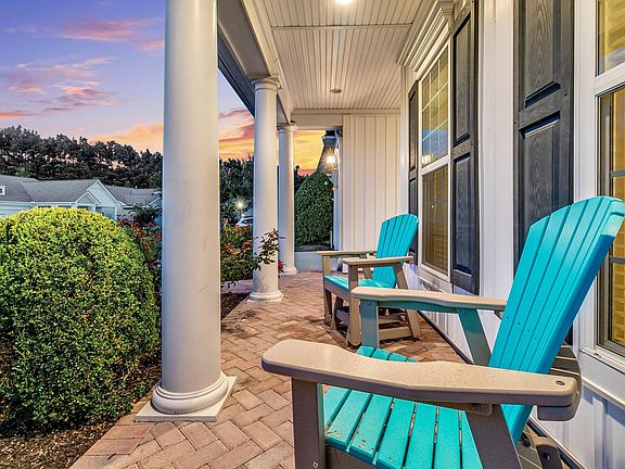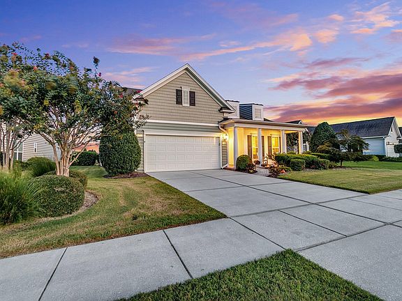Well-maintained, and featuring many after-market home updates, this 4 bedrooms, 3 bath, home with French door office and upstairs loft provides a move-in ready space with plenty of room for visitors! Prepare to be impressed at first glance - a paver patio walkway, full front porch and generous landscaping provides beautiful curb appeal. Step inside the foyer and you'll see 5'' hardwood floors extending through the dining and living rooms, office and halls. Two-piece crown molding provides a stately look to the foyer and living areas and single-piece crown can be found in nearly every other room of the home. A gorgeous stacked stone accent wall is an incredible statement piece to the open concept floor plan. The island kitchen features beautiful 12'' x 24'' tile flooring, white cabinetry,quartz countertops with a large under-mounted stainless steel sink, stainless steel appliances with gas range, tile backsplash, an extended built-in desk, and eat-in breakfast nook. Stepping out through sliding glass doors, you'll find an oversized screened-in porch with paver patio finish and an adjacent rounded paver patio that overlook a serene lagoon with lighted fountain. Back inside, head to the Owner's Suite which featuring upgraded carpet and pad, a tray ceiling with crown molding, two separate vanities with granite counter tops, upgraded faucets and mirrors, tile flooring, a separate jetted tub, walk-in shower and walk-in closet. Two additional first-floor bedrooms also offer upgraded carpet and share a full bath with granite counter top, a walk-in shower and tile flooring. Head upstairs to the oversized bonus room, the perfect space for a man cave, guest retreat, second office or hobby room. An additional bedroom with walk-in closet, full bath with tile flooring, granite counter tops and tub/shower combination plus attic storage space completes the second floor. Don't miss the garage in this home - an epoxy-coated floor, pull down attic storage and built-in storage cabinets make this an ideal space for a workshop or storage space. Be part of the Charleston area's premier active adult community and own a move-in ready home with incredible custom finishes!
